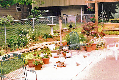 My husband seemed to be a perpetual student, and we moved around quite a bit in those early years. Finally after ten years of marriage we settled down and bought our first home in Cordova, TN. It was a new house, in a brand new subdivision. I was about eight weeks pregnant with our second child when we moved in October of that year. The front yard had the typical builders special shrubs, one small tree and I had cheerful yellow mums in the front flowerbed. I had high risk pregnancies so I didn't garden during that first year. Being a busy mom with two small children and a husband who traveled often with his job, gardening was not a priority. Somehow, I found the time during that second year to plant something called hostas and caladiums, that I had admired in other people's yards. We also edged the front flowerbeds. Nothing was planted in our backyard, not even one tree or shrub. After living there for two years and four months, we sold our home and moved back to Alabama.